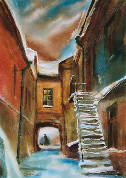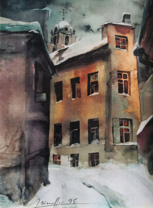 A special place is reserved for a series of works dedicated to the old town of Vilnius, which is forever filled with shades of tragedy. Gradually, this shadow even gave birth to a separate theme – in memory of the vanished Jewish culture of this unusual city.